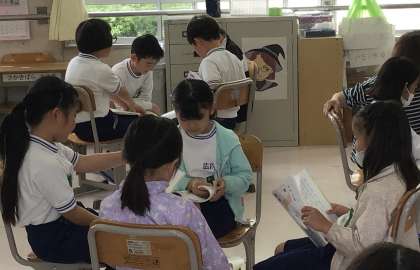 見に行った時は「読み方で工夫したらいいところを話し合う」場面が終わり、先生がそれぞれの班で頑張っていた様子を紹介していました。