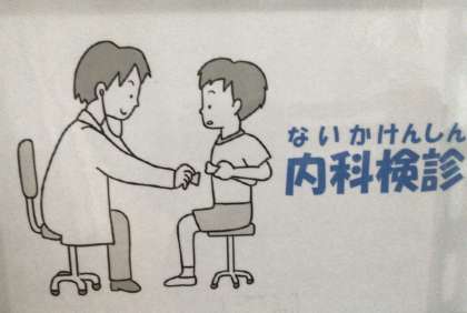 絵にあるようにお医者さんが心臓の音を聴いたりしますので、いつも以上に静かに待つようにしましょう。