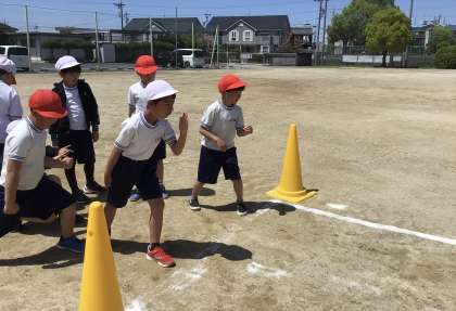 4年生の子たちが去年「走り方教室」で陸上選手からコツを教えてもらっていました。