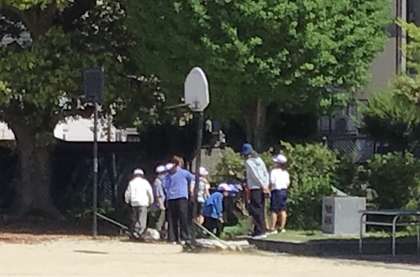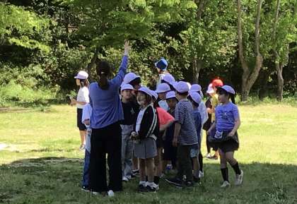 4年2組さん、理科の授業で「春を探そう」ということで運動場に出てきました。