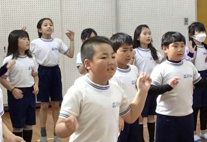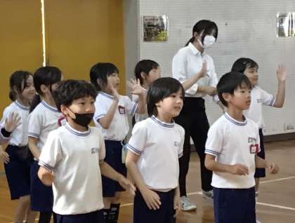 6年生の先生の計らいで「自己紹介ソング」を3年生の子も一緒に歌いながら踊ることになりました。