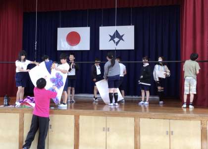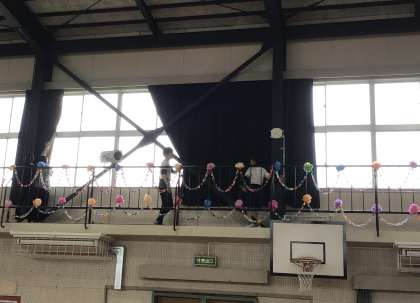 6年生の子たちが1年生を教室まで送り届けた後、体育館の片付けを始めました。 最後までありがとう!