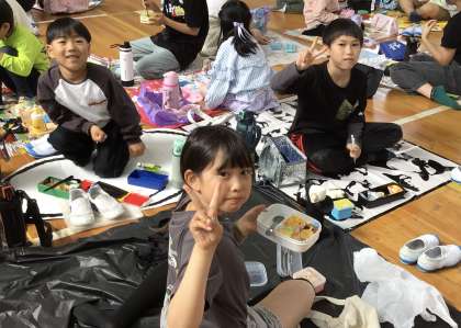 体育館でも食べていました。 広々としていて良かったですね。