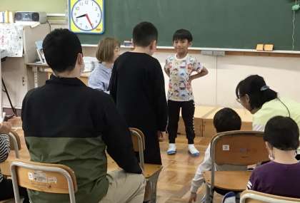 学年の上の子たちはスピーチも慣れたもので、エピソードや冗談を入れながら話していました。