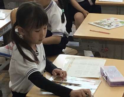 音楽の授業でしたが、「ひらがな」の勉強にもなりますね。