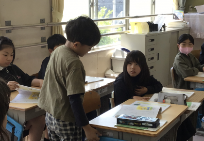 4年1組さん、道徳の授業で「小さな草たちにはく手を」について、みんなで考えていました。