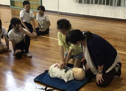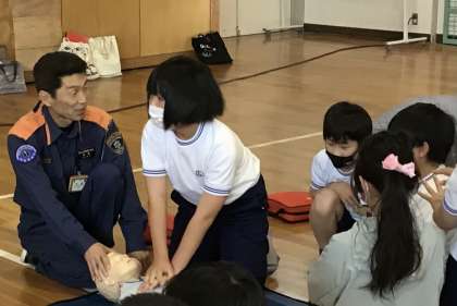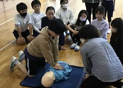今日の勉強で広川台小学校は5年生と6年生の子たちが胸骨圧迫ができるようになりましたね。