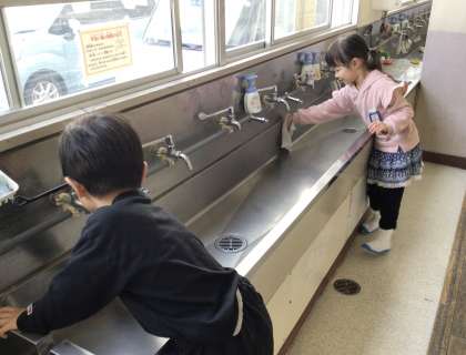 特別支援学級さんの前にある手洗い場は、支援級のみんなと1年2組さんが使います。