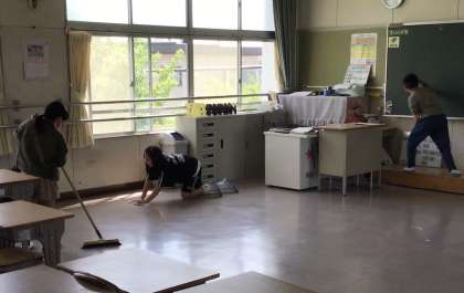 1年生の子2人は「とっても清掃が上手なんです」「この2人の子の掃除はプロですよ」と近くで掃除をしている先生たちが口を揃えて話していました。