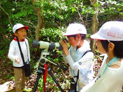 「白組」の子たちも望遠鏡で木にとまるフクロウの赤ちゃんを見たみたいです。