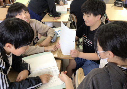 6年生の教室では、5月20日(火)のにこにこタイムに予定している『トロロっ子遊び』の準備が行われていましt。
