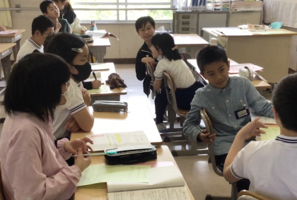 近くの子と相談しながら、いくつかある遊びの中から自分が考えるどの学年も楽しめそうな遊びを選んでいくそうです。