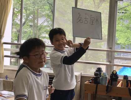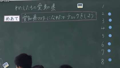 4年2組さん、社会の授業で「愛知県マスターになれたかチェックしよう」ということで、班対抗のクイズにチャレンジしていました。