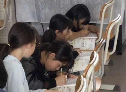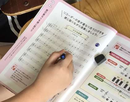 5年1組さん、音楽の授業で「小さな約束」という曲の階名を記入していました。