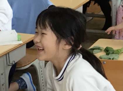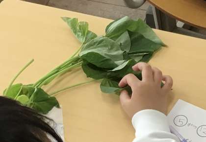 さつまいもの葉っぱが一人一人の机の上に置いてありました。