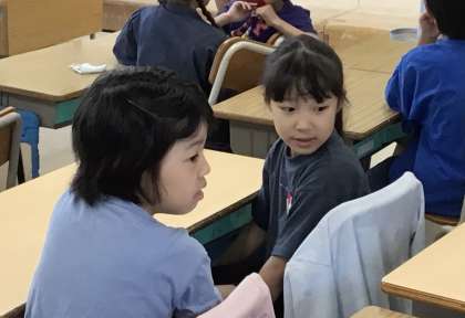 真ん中の写真にあるように、近くの子と話し合いが始まりました。
