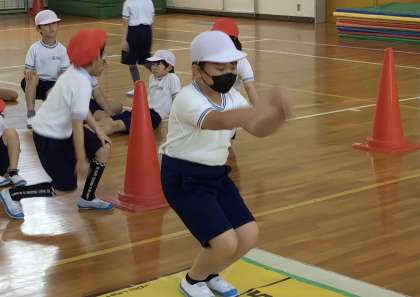 3年生のみんなが立ち幅跳びに挑戦中でした.