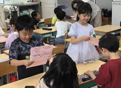 今日は1年生の子たちに招待状を渡す時、どんな風にしたらいいかを練習していました.