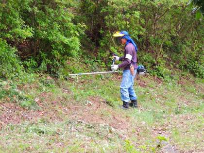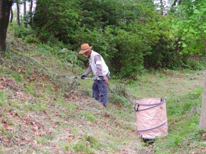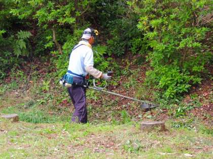 美里1丁目お助け隊より6名のみなさんが、校舎南側斜面の草刈りに来ていただきました。