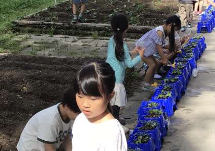 1年生の子たちもサツマイモや植木鉢に水やりを毎日しています.