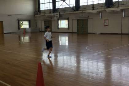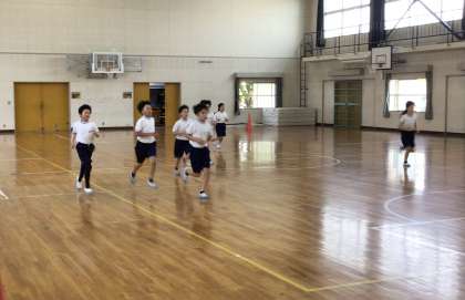 5年1組さん、体育の授業で体力テスト「シャトルラン」をしていました.