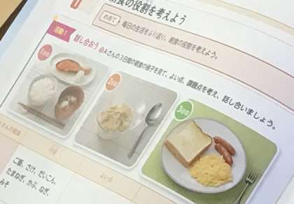6年2組さん、家庭科の授業で朝食について考えていました.