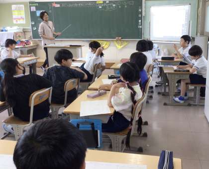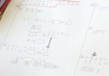 4年1組さん、算数の割り算の筆算を勉強していました.
