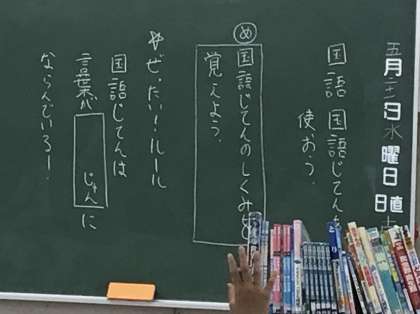 3年2組さん、国語辞典の使い方を今日は勉強します.