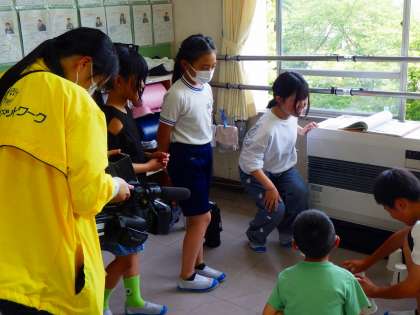 最初から緊張することもなく、自分からカメラに近づいていく広川台小の子どもたち。