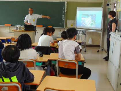 まずは、教室で、鉄筋コンクリートのお話を聞きました。鉄筋コンクリートは、地震や火事などの災害に強く長持ちし、なくてはならない材料であることを学びました。
