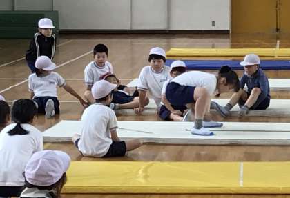 4年2組さん、マット運動でいろんな練習をしました。