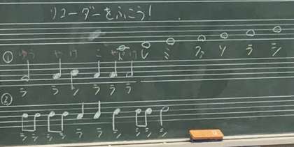 先生が黒板に書いた音階を吹いていました。