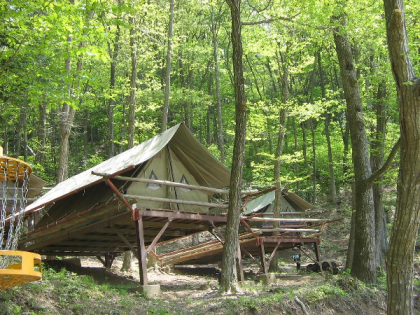ファミリーサイトはテントが常設されています。全部で25張あります。山の斜面にそって建てられている場所もあるので、坂の上の方のテントは景色もいいです。ただ、坂になるので気をつけて上り下りをしましょう。(写真はAサイトのものです)