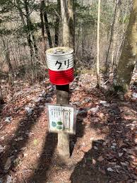 カレーオリエンテーリングの時の探すポストは下の写真のようなものです。植物や鳥などの名前が書かれている白と赤の缶です。施設内のあちこちに設置してあるので、探すのはたいへんですが、地図を見ながら頑張って探してください。