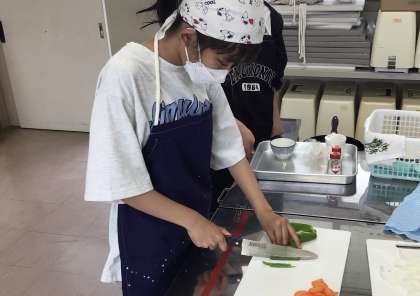 いい感じで同じ太さで上手にピーマンを切っていた女の子。