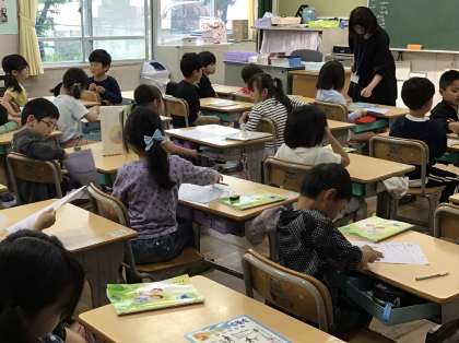 1年1組さん、今日はひらがなの「や」を勉強しています。