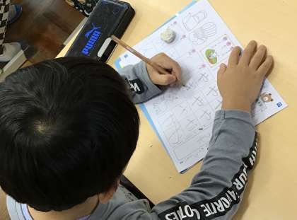 「や」と口に出しながら何度もプリントに書き込んで、書き順や形を覚えていました。