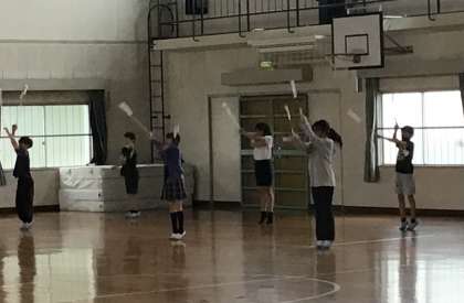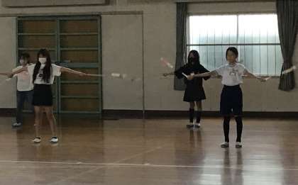 先生からは「ここ、もう一回やるよ」「そろえるよ」「止めて」「角度を意識するよ」と叱咤激励が飛びます。会場には星先生、小野先生、5年生の女の子3人も見にきていました。