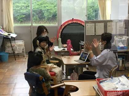 みんなで手拍子しながら、楽しく歌を歌っています。