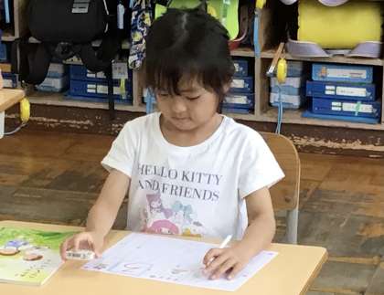 その後、えんぴつを持って、紙で練習です。