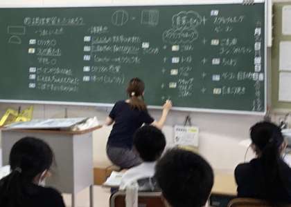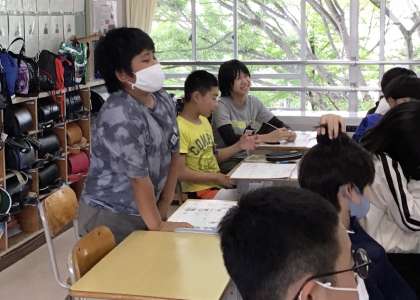 6年2組さん、家庭科の授業で調理実習の振り返りを行っていました。