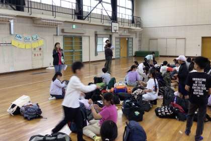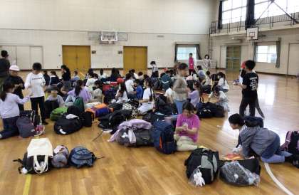 出発式を前に体育館にみんなが集まりました。 この後、出発式が始まります。