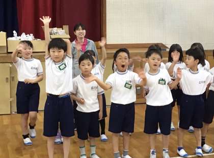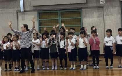 体育館でお見送りをしてくれました。