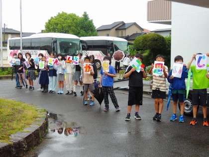 5年生がバスに乗り込むころには、雨がほとんどやんでいました。
