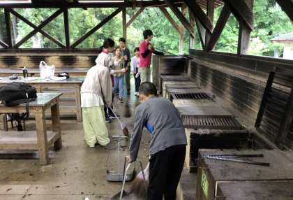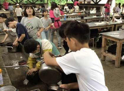 鍋やはんごう、お皿などを洗います。