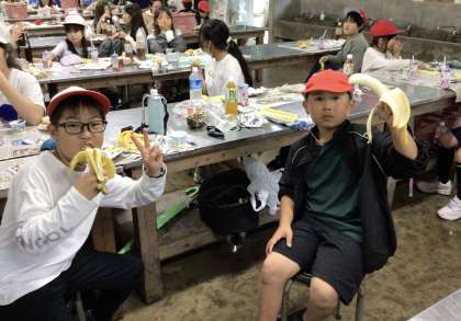バナナは一人一本配られていますが、「バナナ、うまい」と言って、二本、三本と頬張っている男の子もいました。