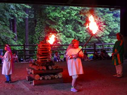 山の神、火の神の入場でファイヤーが始まりました。