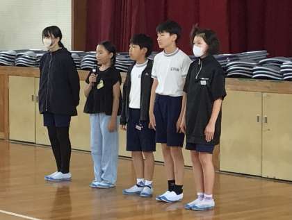 体育館で保健委員会の子たちが、明日の2時間目の集会に向けて、リハーサルをしていました.