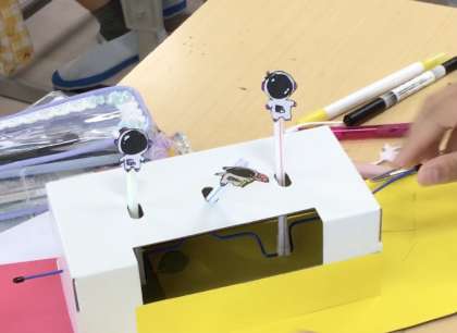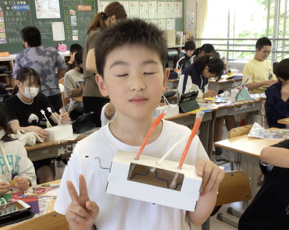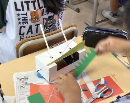 6年2組さん、「くるくるクランク」の動きを確かめながら、楽しい動きをするものを作成中でした。