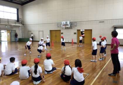 どちらが早かったかは、見ている子たちでセルフジャッジします.